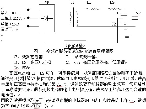 變頻控制器集調(diào)壓、調(diào)頻、控制及保護(hù)功能為一體,省去了笨重的調(diào)壓器,而且操作方便、讀數(shù)直觀。由于系統(tǒng)Q值較高(30-120),有效地解決了由于電源容量的不足對(duì)現(xiàn)場(chǎng)試驗(yàn)的制約。當(dāng)電壓等級(jí)較高時(shí),電抗器采用多級(jí)或疊積式結(jié)構(gòu),便于運(yùn)用輸及現(xiàn)場(chǎng)安裝。